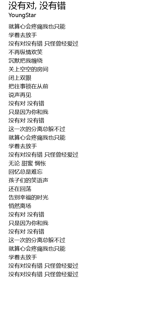 | [01:04.920] | méi yǒu duì méi yǒu cuò |