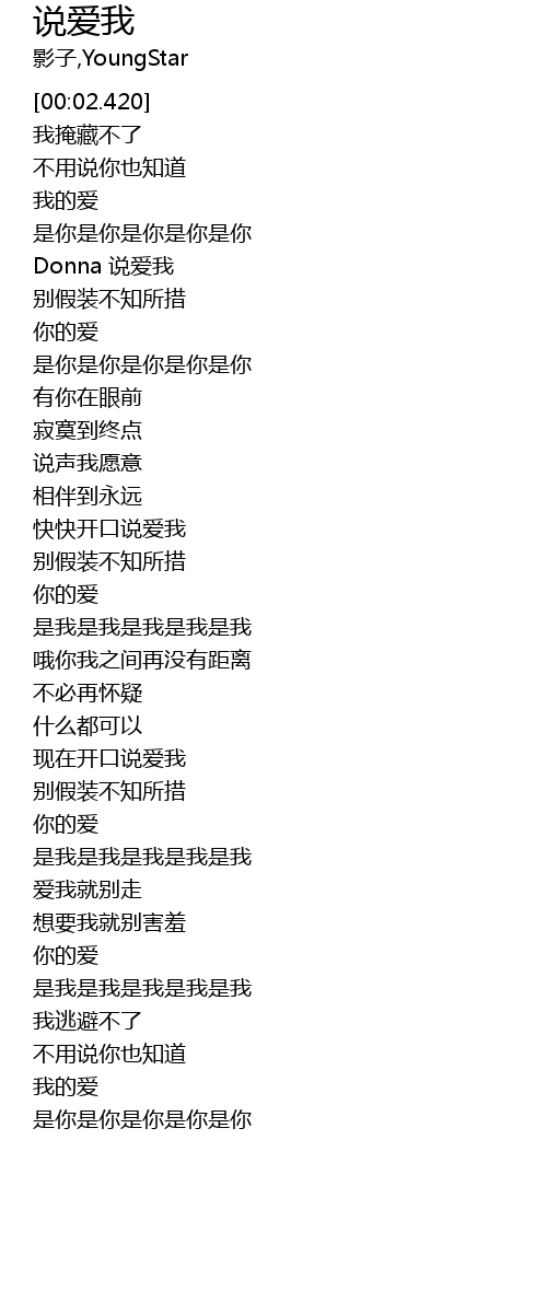 | [00:56.090] | kuài kuài kāi kǒu shuō ài wǒ |