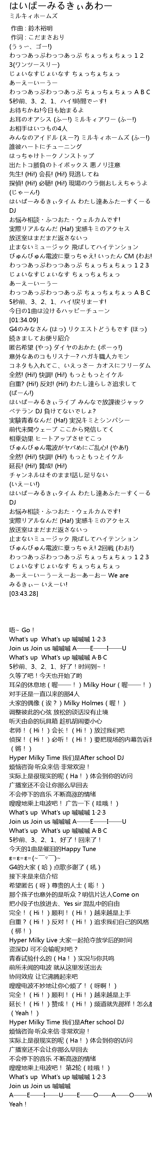 | [02:00.77] | はいぱーみるきぃライブ みんなで放課後ジャック |