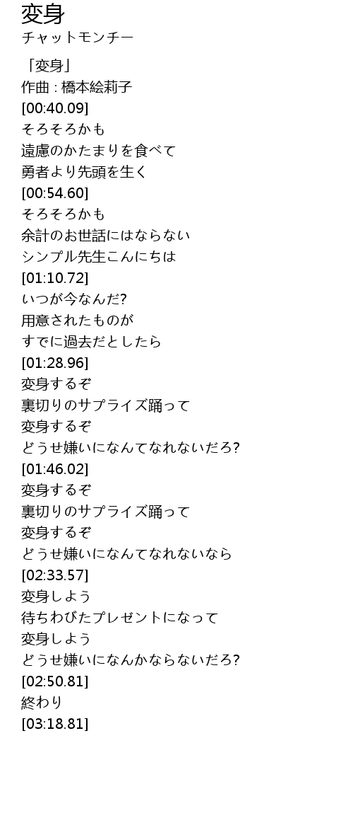 | [01:33.46] | 裏切りのサプライズ踊って |