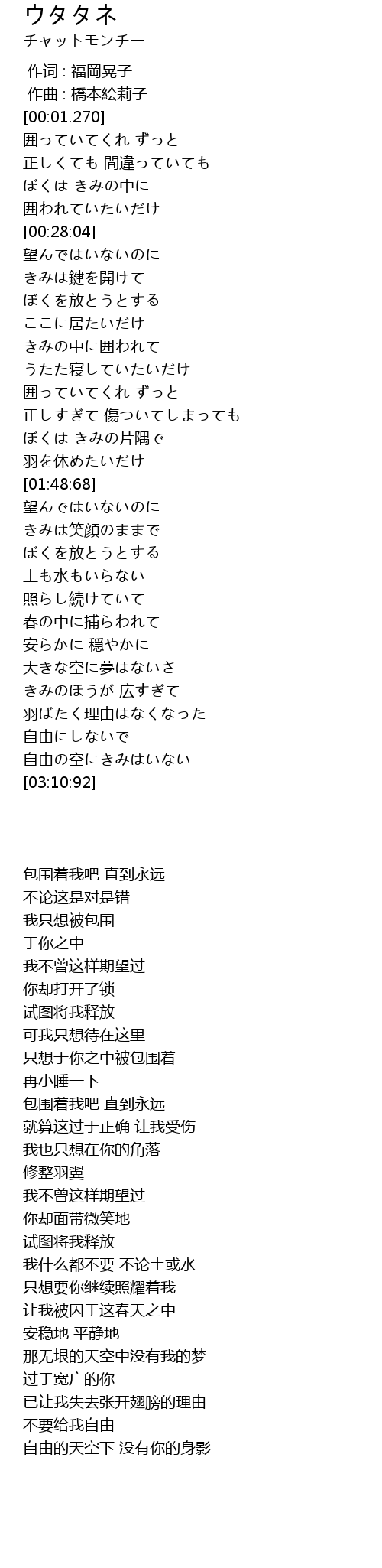 | [00:03:61] | 囲っていてくれ ずっと |
