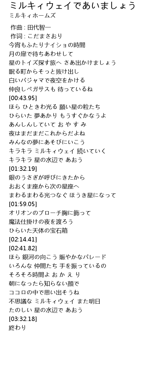 不思議な ミルキィウェイ また明日 |
