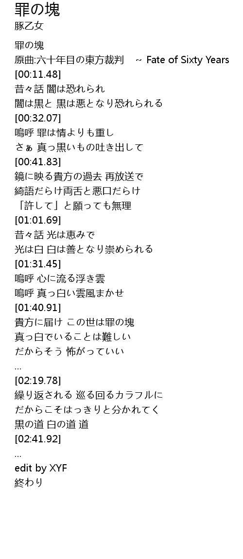 | [01:41.22] | 貴方に届け この世は罪の塊 |