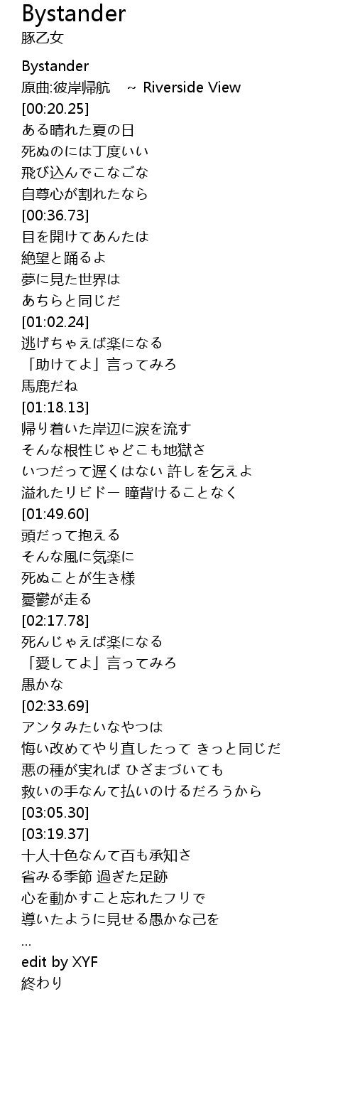 | [00:02.73] | Bystander |