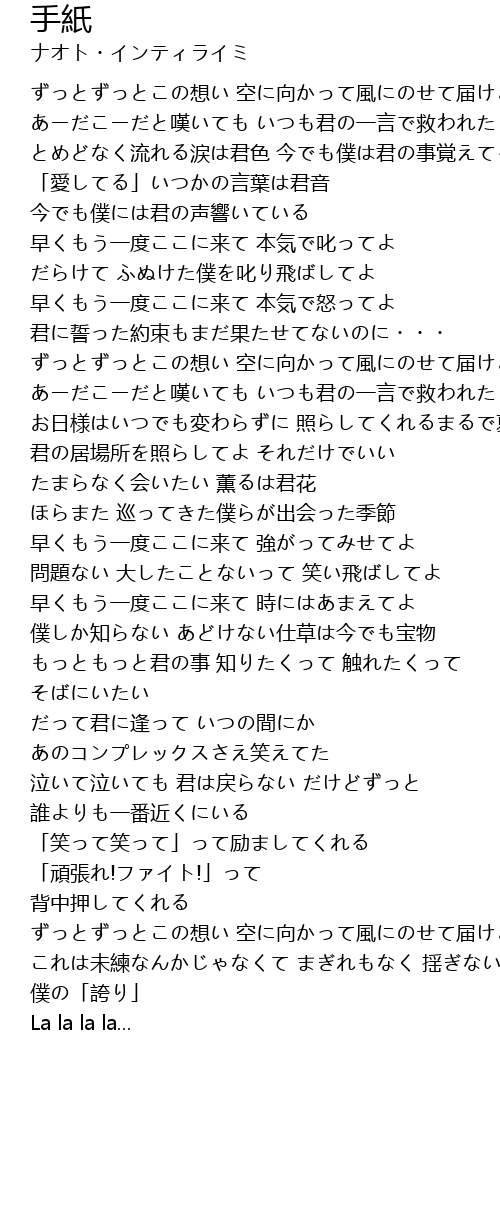 | 泣いて泣いても 君は戻らない だけどずっと 誰よりも一番近くにいる | |