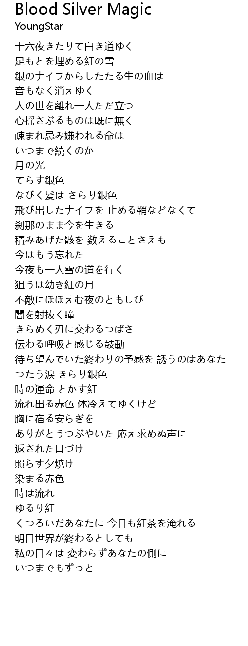 | Song | Blood Silver Magic |