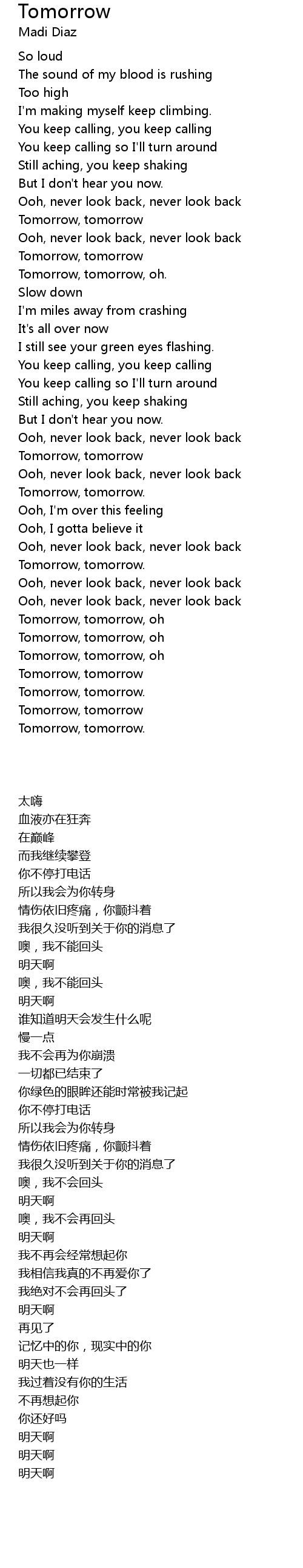 | [01:09.67] | Tomorrow, tomorrow, oh. |
