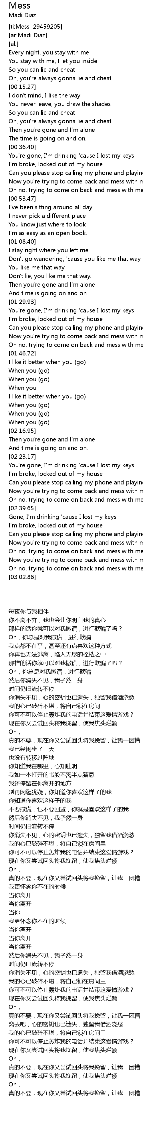 | [02:23.37] | You're gone, I'm drinking 'cause I lost my keys |
