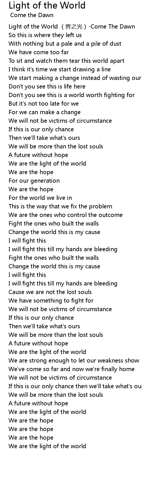 | [03:28.86] | We are the light of the world |
