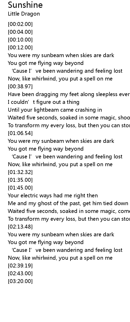 | [00:13.42] | You were my sunbeam when skies are dark |