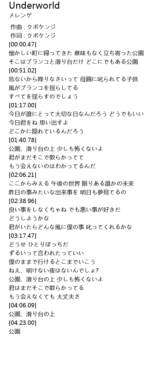 | [00:41.45] | そこはブランコと滑り台だけ どこにでもある公園 |