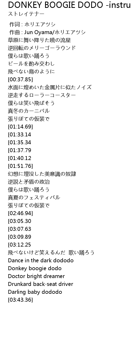| [01:42.28][01:33.14] | Donkey boogie dodo |