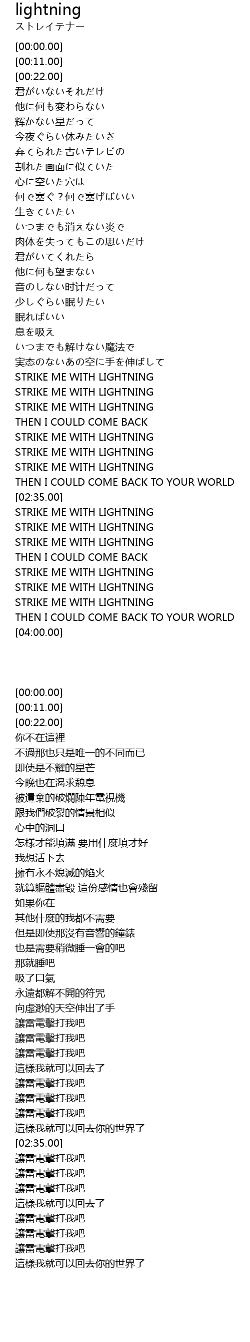 | [01:58.00] | STRIKE ME WITH LIGHTNING |