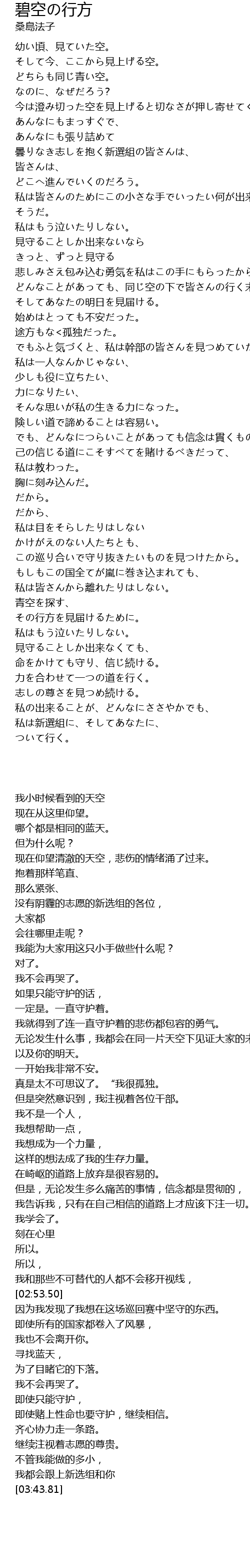 | [03:31.39] | 志しの尊さを見つめ続ける。 |