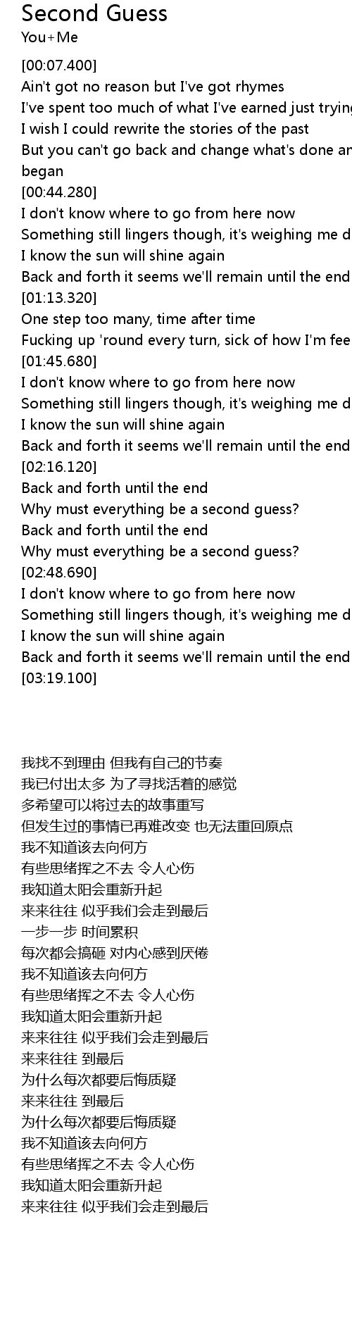| [00:53.720] | Something still lingers though, it's weighing me down |
