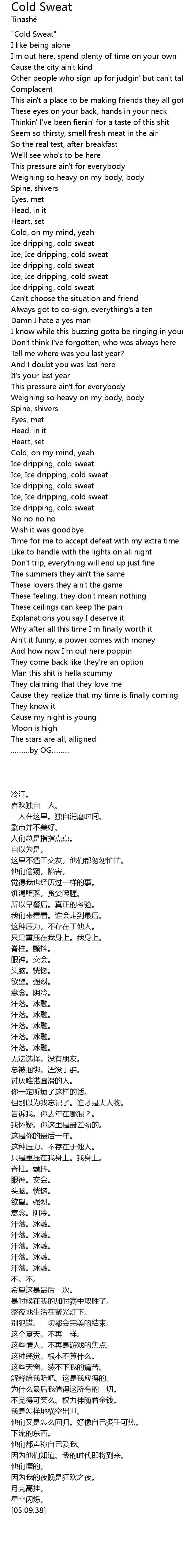 | [01:20.53] | Ice, Ice dripping, cold sweat |