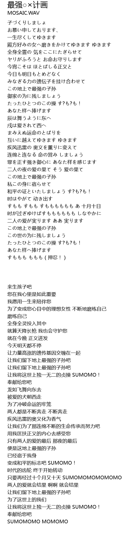 | Song | 最强○×计画 |