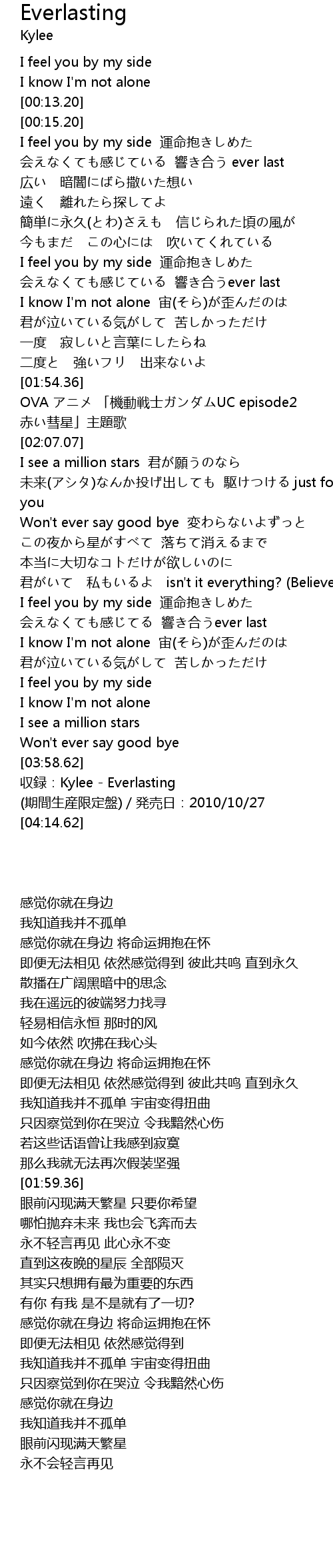 | [04:00.62] | 収録:Kylee - Everlasting (期間生産限定盤)/発売日:2010/10/27 |
