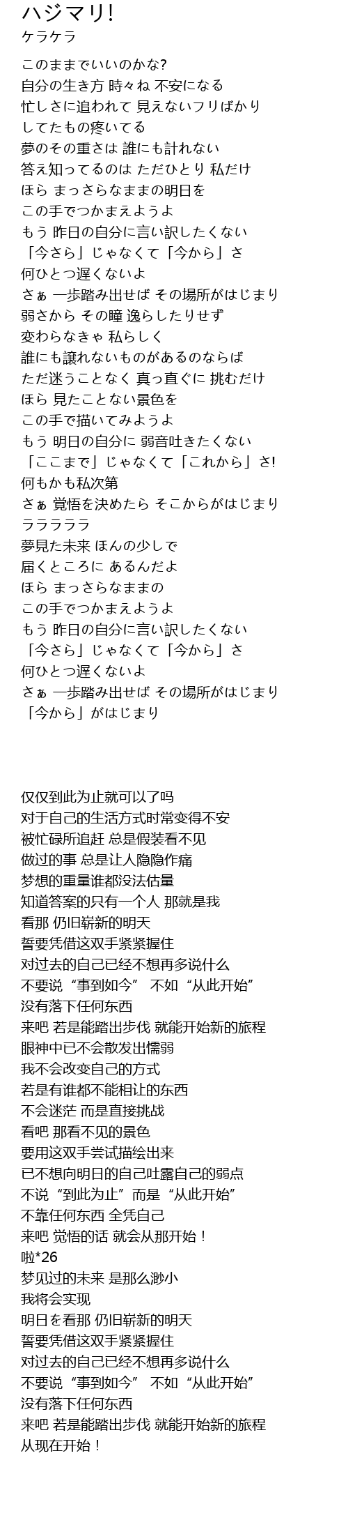 | [01:20.70] | 「今さら」じゃなくて「今から」さ |