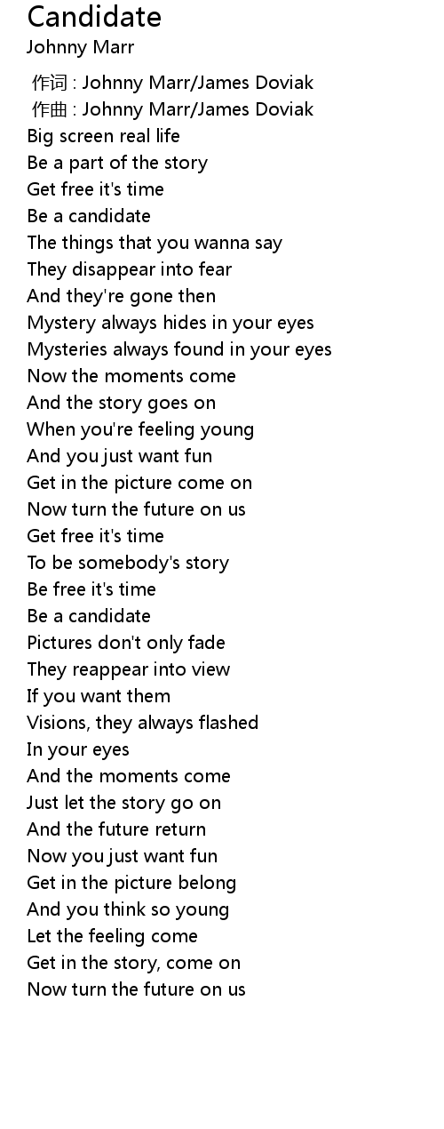 | [00:00.000] | zuo ci : Johnny Marr James Doviak |