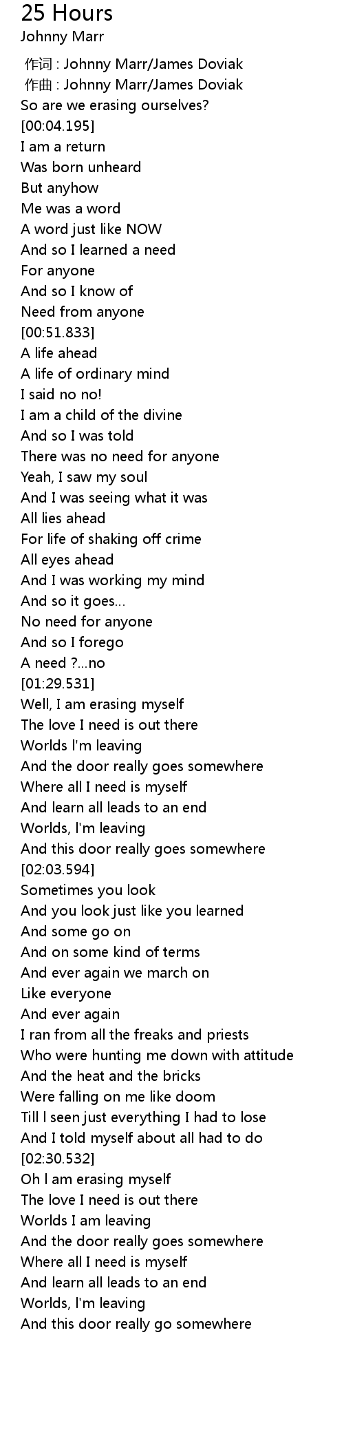 | [00:00.000] | zuo ci : Johnny Marr James Doviak |