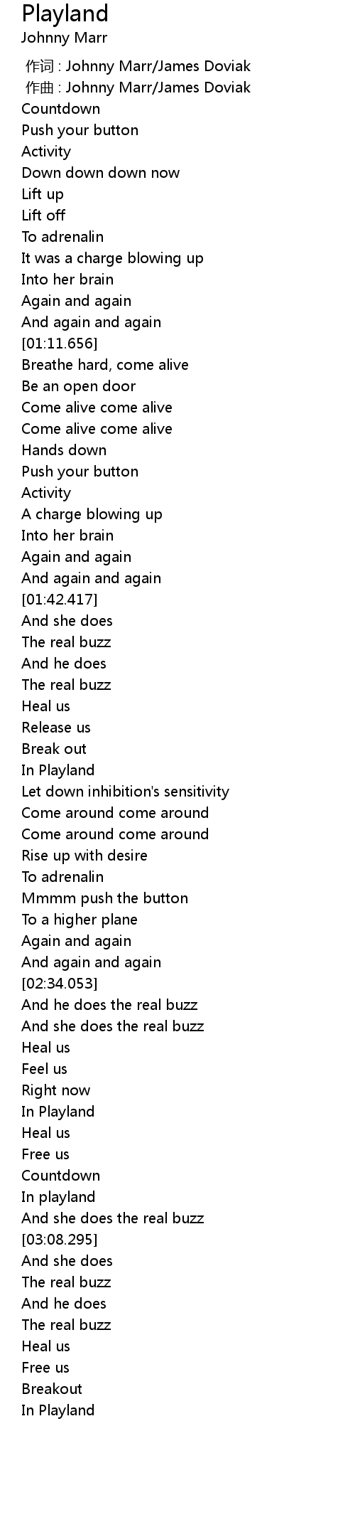 | [00:01.000] | zuo qu : Johnny Marr James Doviak |