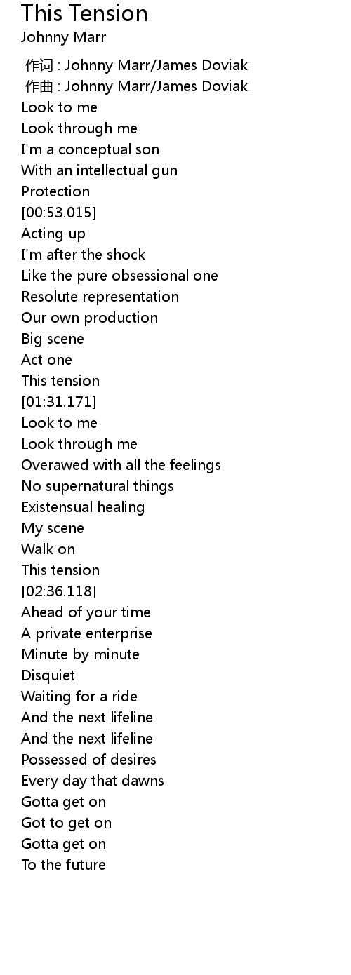| [00:00.000] | zuo ci : Johnny Marr James Doviak |
