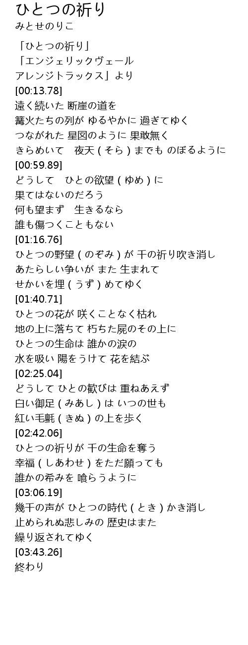 | [00:00.69] | 「ひとつの祈り」 |