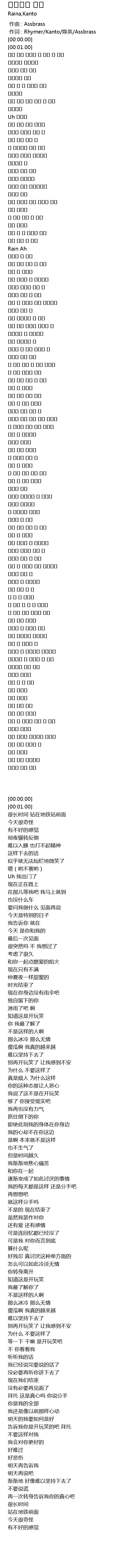| [00:00.00] | 作词 : Rhymer/Kanto/焕英/Assbrass |