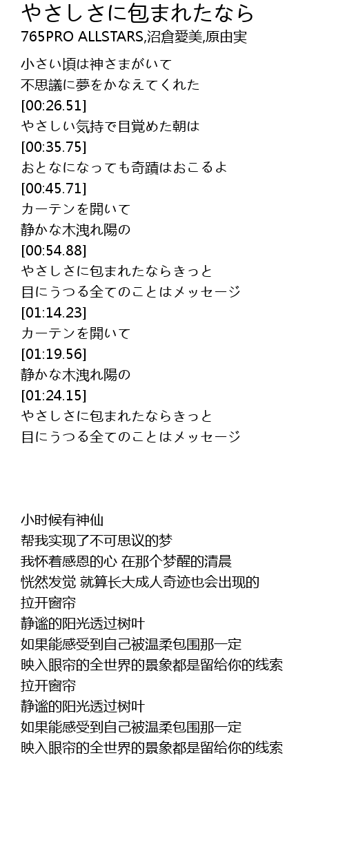 | [00:55.51] | やさしさに包まれたならきっと |