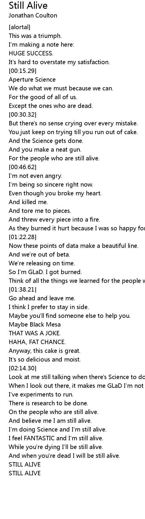 I'm doing Science and I'm still alive. |