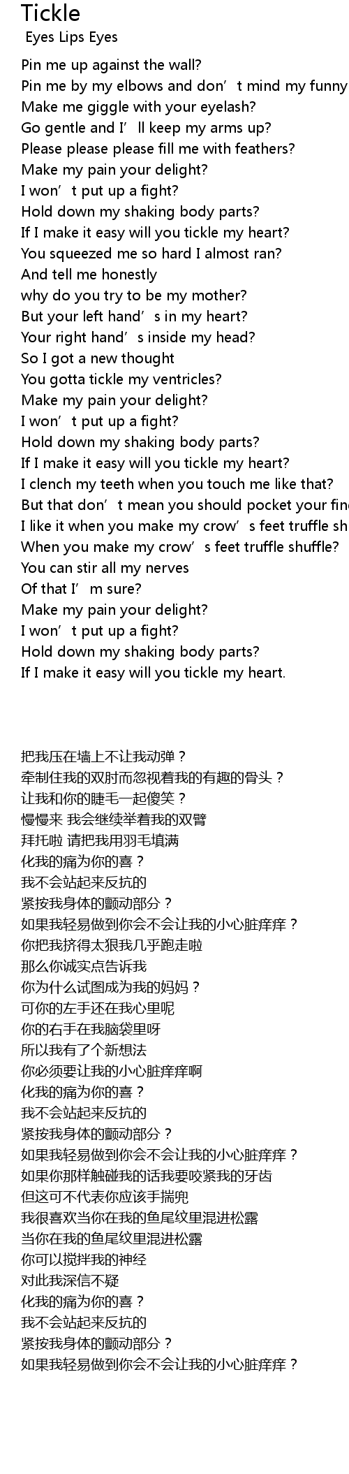 | [02:36.71] | If I make it easy will you tickle my heart? |