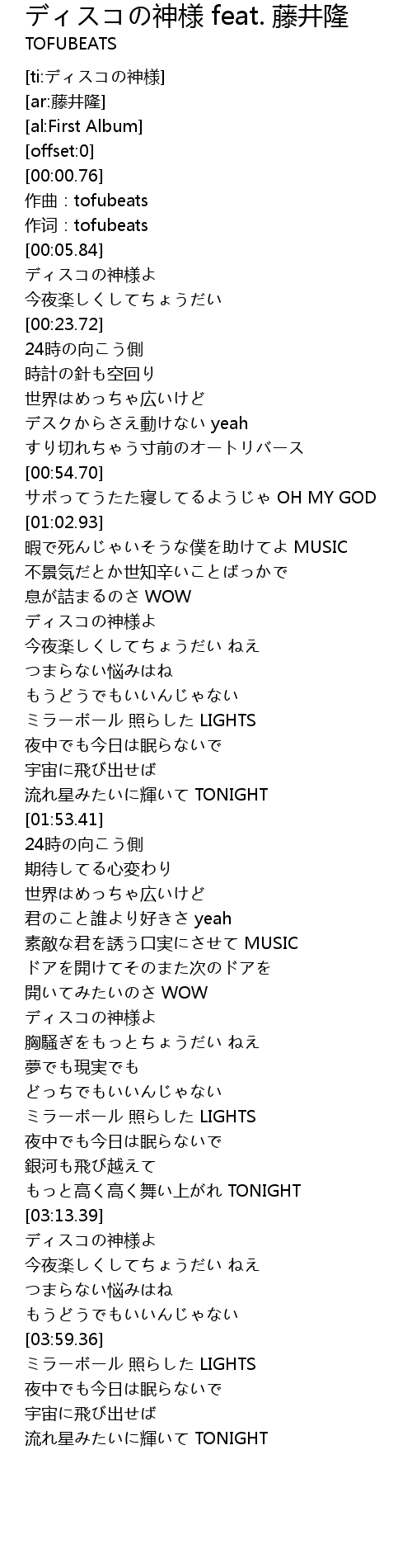 | [01:36.76] | ミラーボール 照らした LIGHTS |