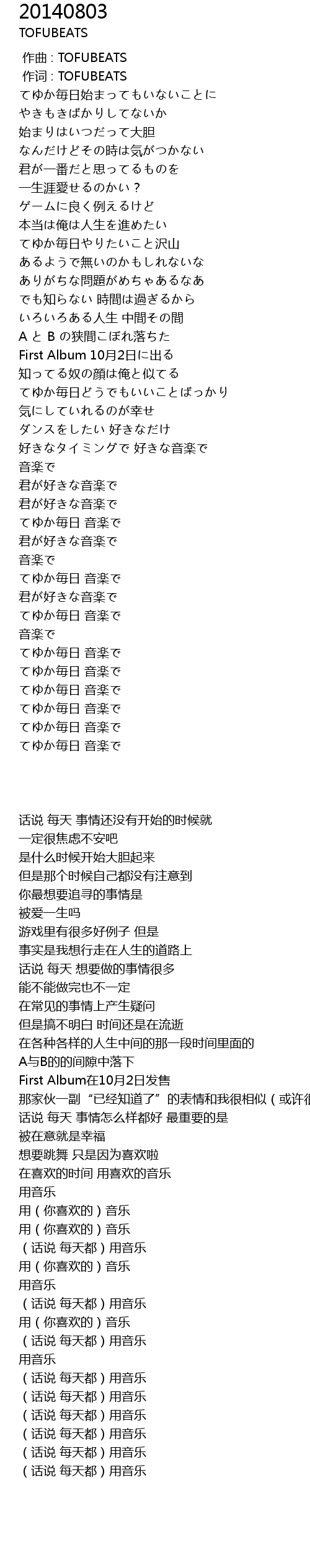 | [00:01.00] | 作词 : TOFUBEATS |