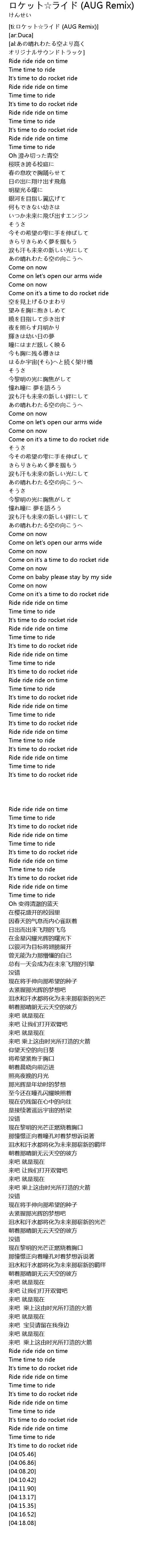 | [ti:ロケット☆ライド (AUG Remix)] | |