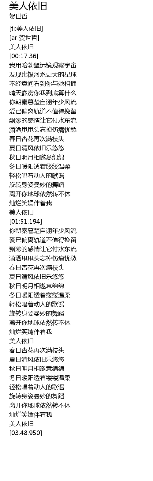 | [01:34.10] | li kai ni di qiu yi ran zhuan bu xiu |