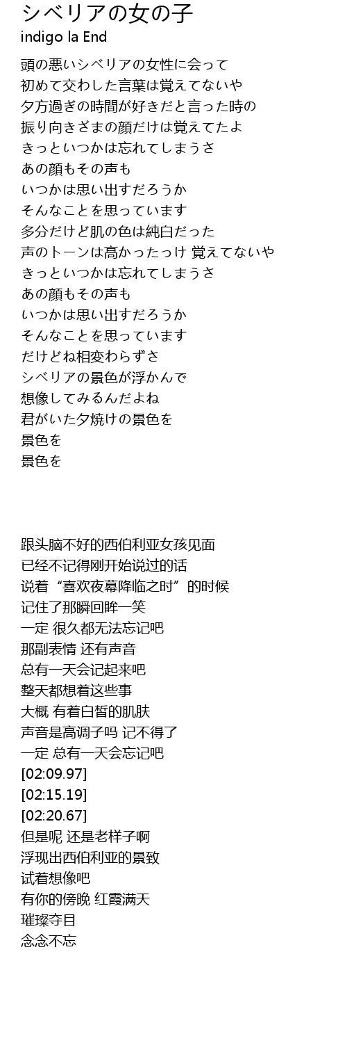 | [02:30.91] | シベリアの景色が浮かんで |
