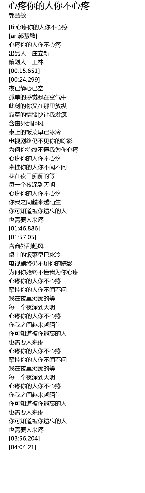 | [00:01.468] | 心疼你的人你不心疼 |