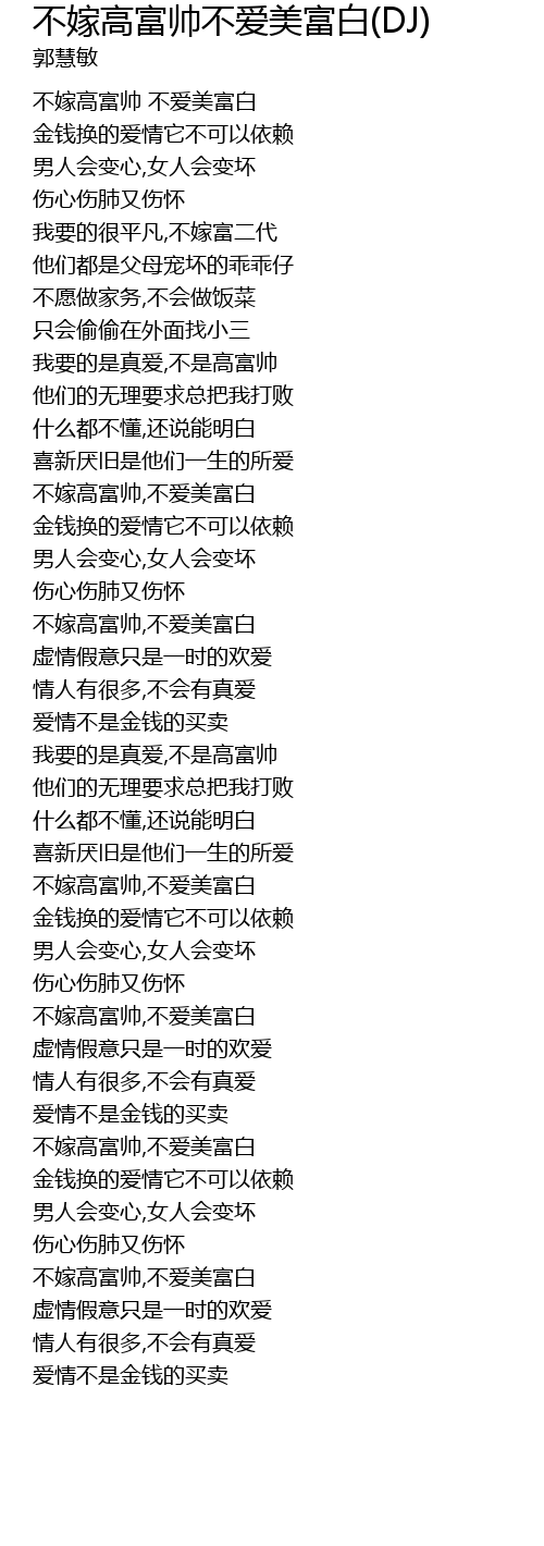 | Song | 不嫁高富帅不爱美富白(DJ) |