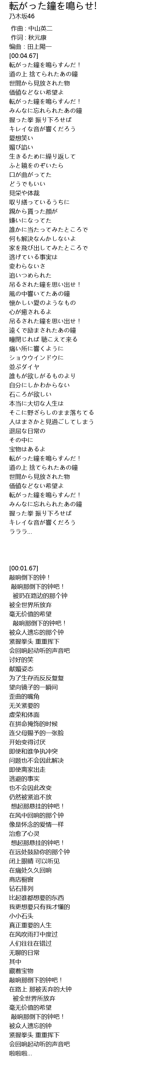 | [03:03.33] | 転がった鐘を鳴らすんだ! |