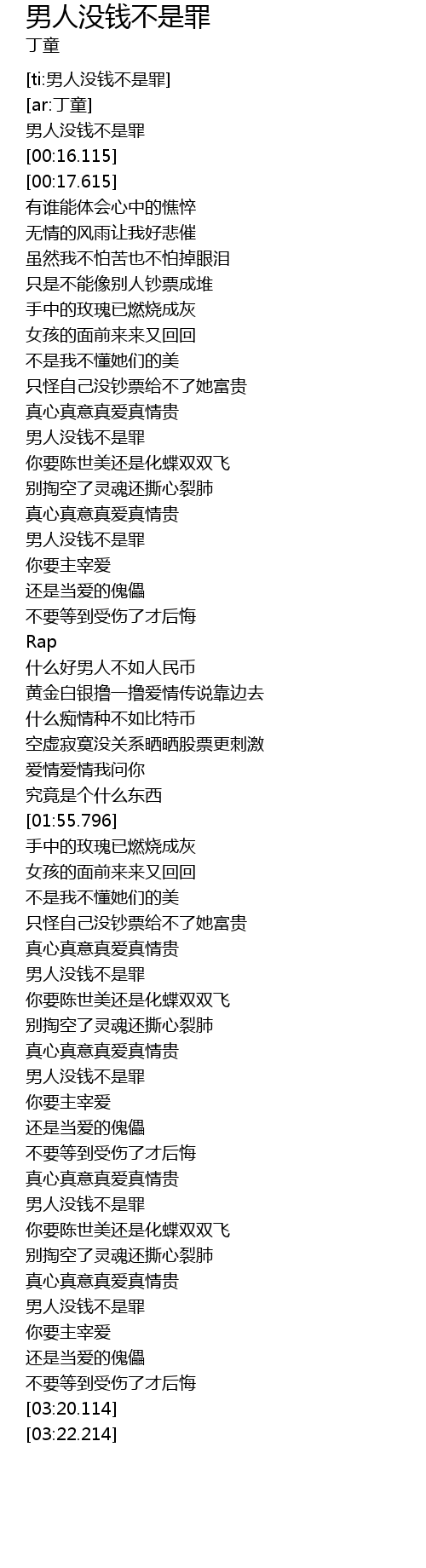 | [00:57.171] | 男人没钱不是罪 |