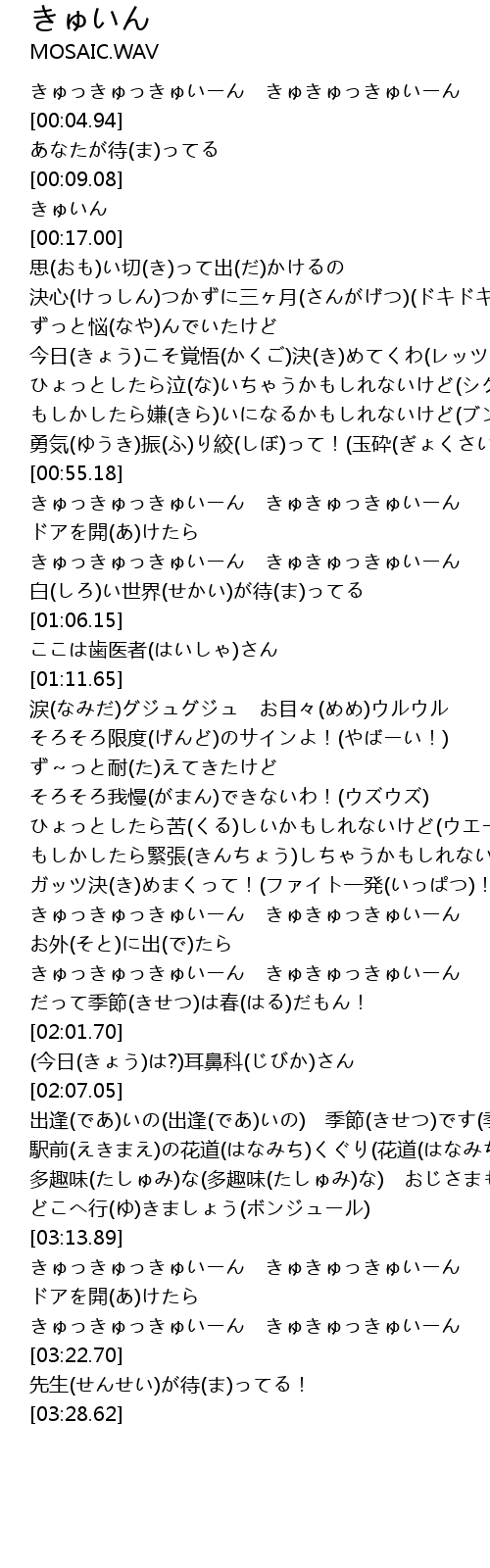 | [03:14.93] | きゅっきゅっきゅいーん きゅきゅっきゅいーん |