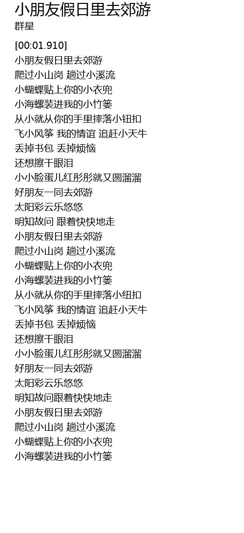 | [01:12.410] | 小朋友假日里去郊游 |