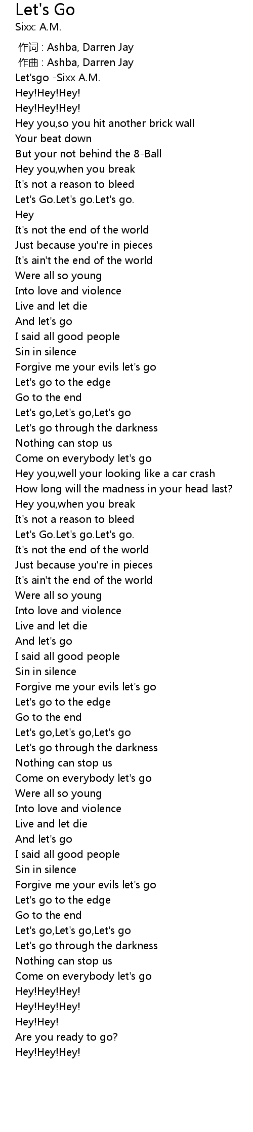 | [02:33.74] | Let' s go, Let' s go, Let' s go |