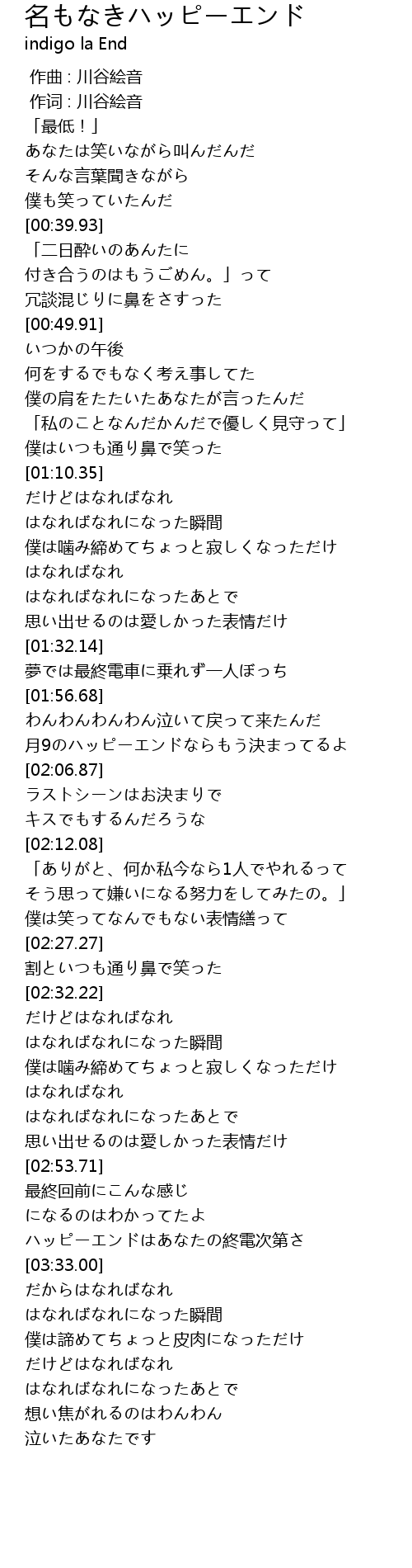 | [03:29.43] | ハッピーエンドはあなたの終電次第さ |