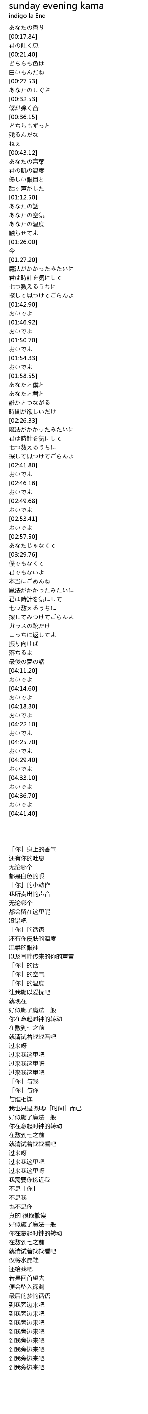 sunday evening kama Lyrics