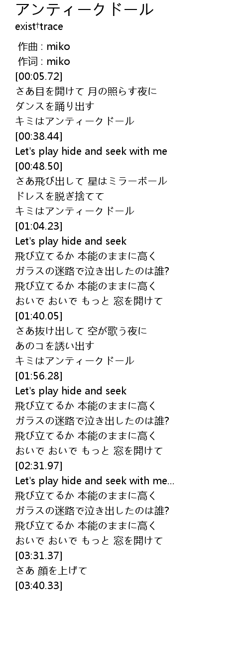 | [03:22.82] | おいで おいで もっと 窓を開けて |