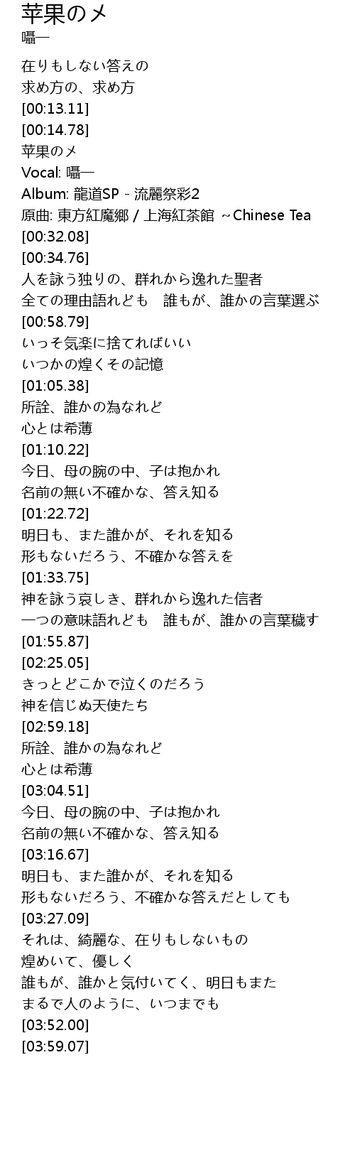 | [00:19.55] | Vocal: 囁一 |