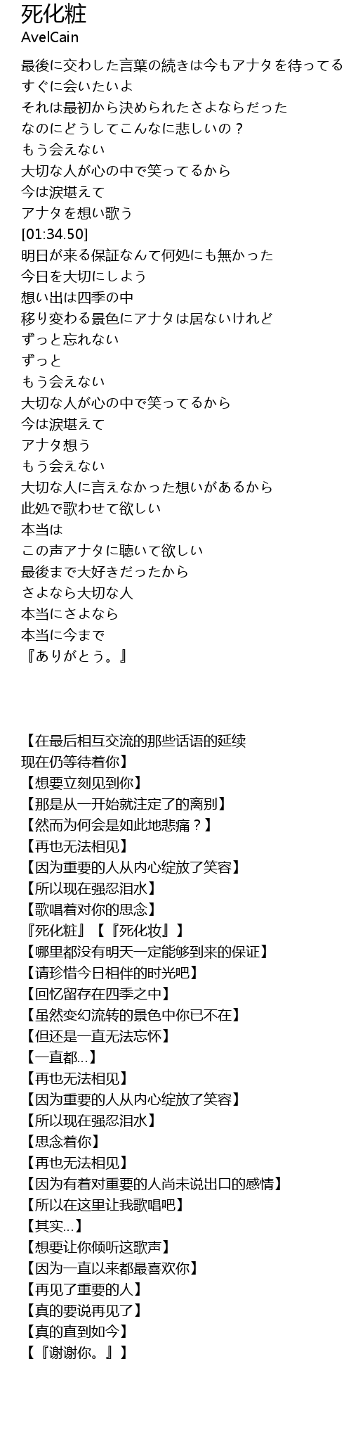 | [00:44.61] | 最後に交わした言葉の続きは今もアナタを待ってる |