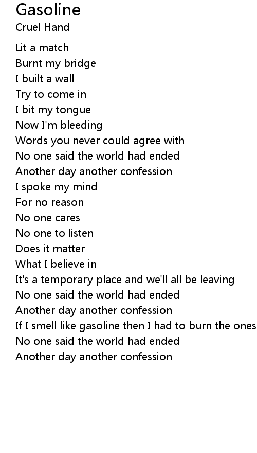 If I smell like gasoline then I had to burn the ones who burned me |